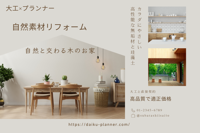 当社は大工の強みを活かし、自社製作を取り入れた高品質な自然素材リフォームを展開しています。